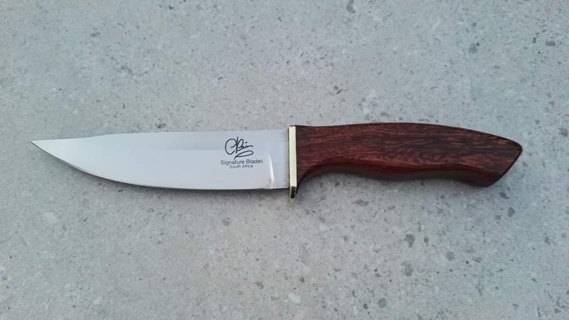 Each knife is personally ground. The blades are sharpened, handles and signature paw-print mosaic pins made, inserted and scales joined. Finally the handle is shaped, ground, sanded and buffed. Each knife is ground and sharpened to perfection.